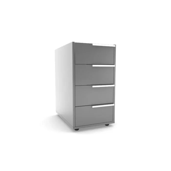 Kilitli üst çekmecesi ve tekerlekli yapısıyla banko altı kullanımına uygun, dayanıklı ve işlevsel 4 çekmeceli ofis dolabı.